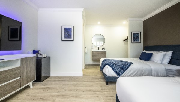 Our spacious Non Smoking Standard Two Queen rooms accommodates up to four guests. Guests experience plush bedding, premium mattresses and free WiFi. All rooms come with 55 inch flat screen television, single serve coffee maker, microwave, mini-refrigerator, hair dryer, shower, free local calls and free toiletries.